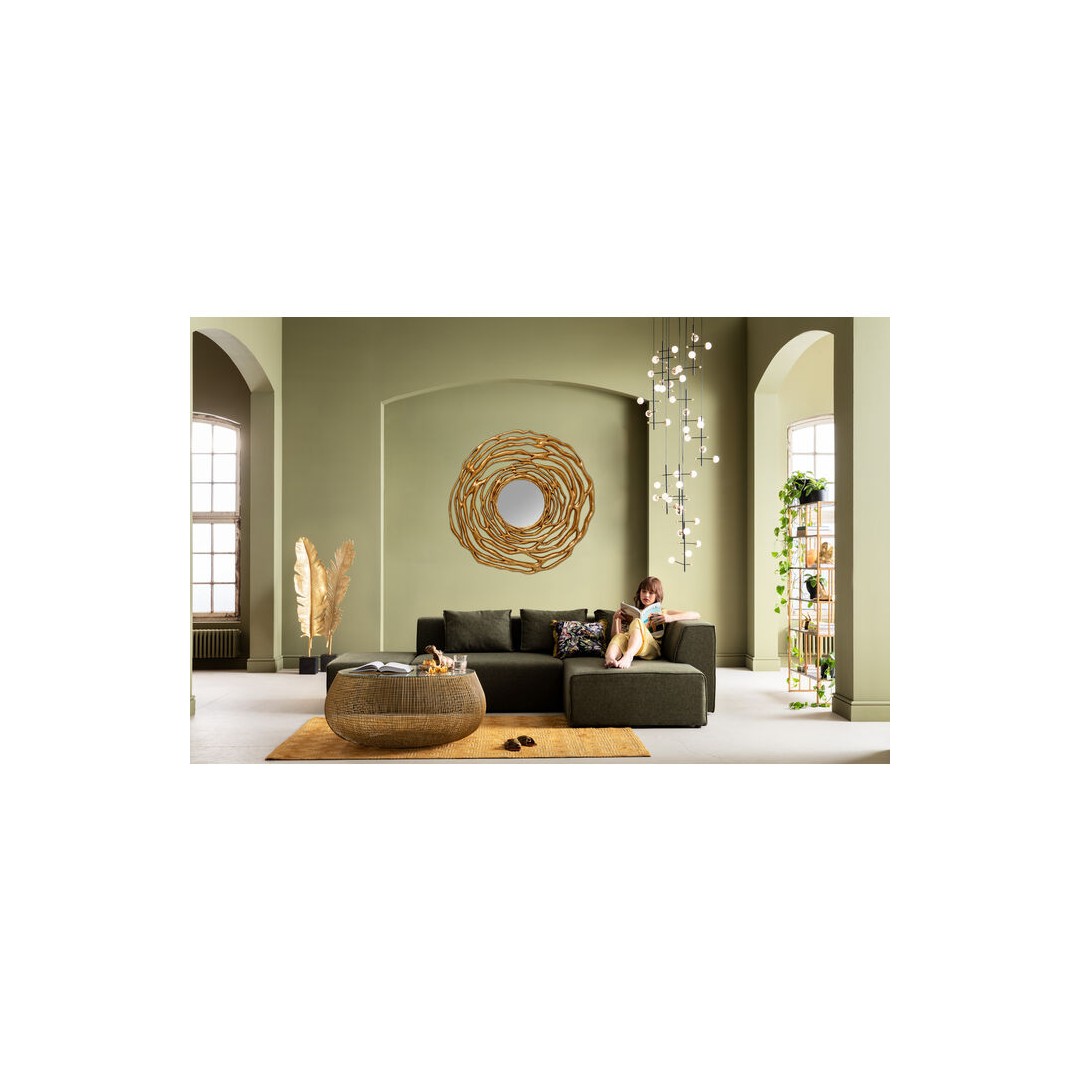 La llamativa forma de este espejo XL da a tu hogar un toque exclusivo y artístico. El espejo de pared queda ideal colgado encima del sofá del salón. Puedes conseguir aún más efectos si colocas el objeto de espejo frente a una fuente de luz o una ventana. Como el marco está hecho a mano, es posible que haya desviaciones con respecto a la ilustración.