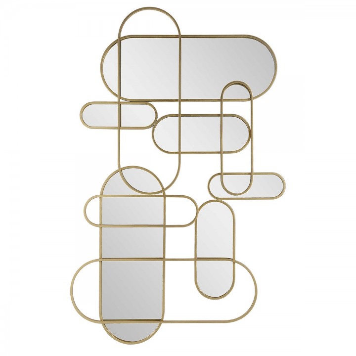 Un llamativo laberinto de elipses de espejo y pan de oro, el panel de espejo On Track añade un toque moderno a cualquier diseño de pared. Puede colgarse en horizontal o vertical.