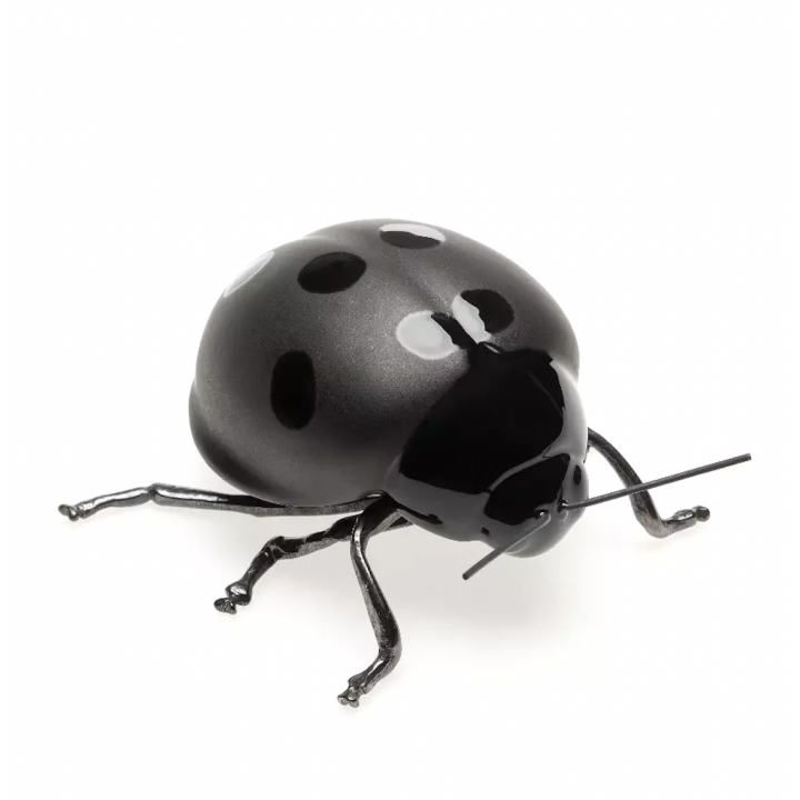 "Mariquita, vuela, vuela" es una representación de una observación personal. Está en loza y decorada a mano. Esta pieza, puramente decorativa, está ennoblecida por patas de latón natural u oxidado, fundidas manualmente en un molde de arena. Esta pieza hecha a mano puede tener pequeñas variaciones.