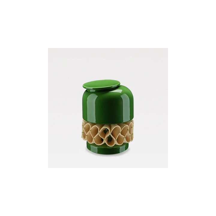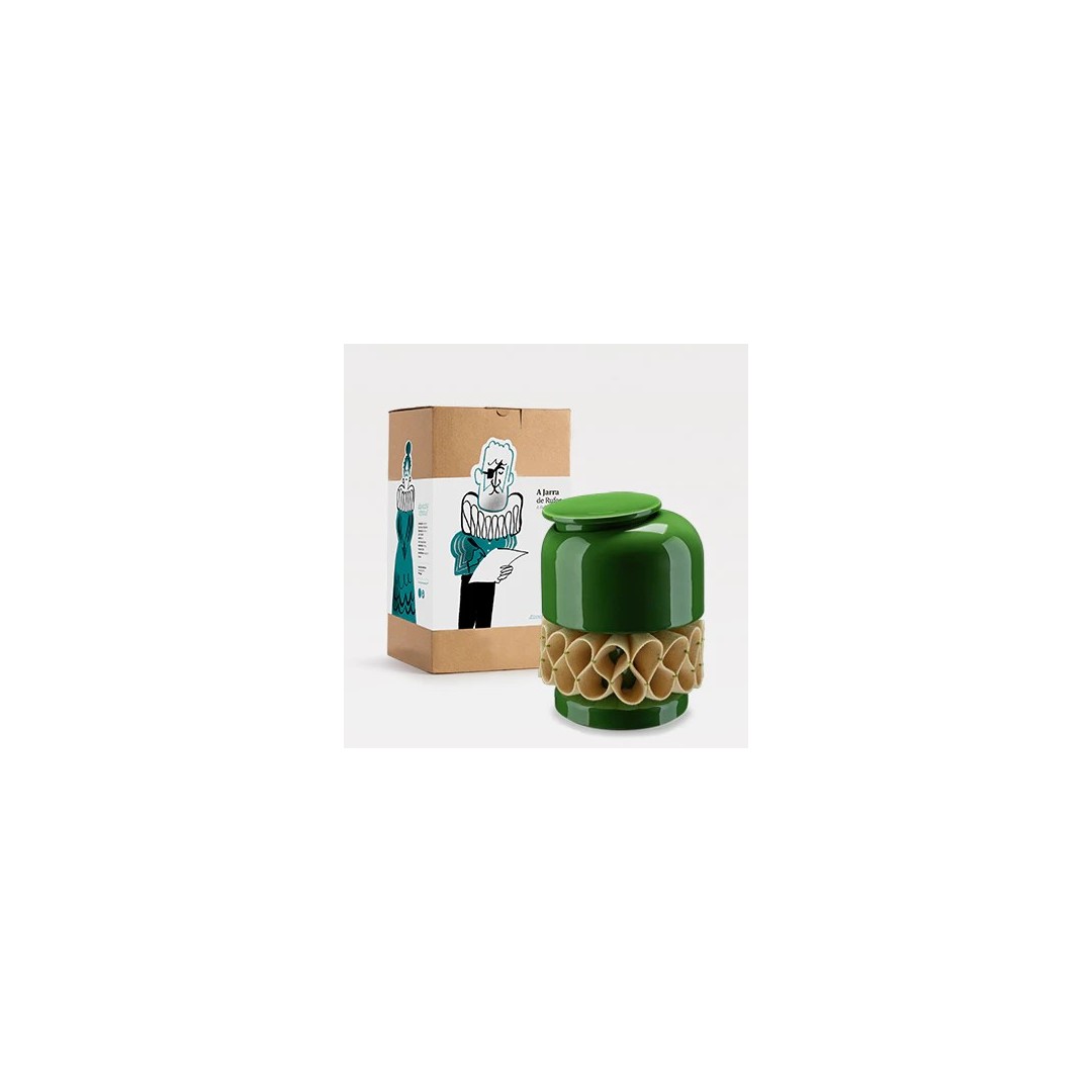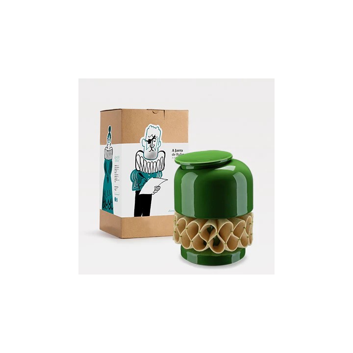 El Gola de Rufos es una pieza en loza, vidriada manualmente, siguiendo la tradición de la técnica manual de inmersión. Está adornada con un cuello de burel, inspirado en el modelo de rufos del siglo XVI, hecho a mano por una artesana portuguesa especializada. El cuello de burel permite la limpieza en seco. En esta caja podrás guardar preciosidades, reliquias, dulzuras y todo aquello que te gustaría ver bien protegido.