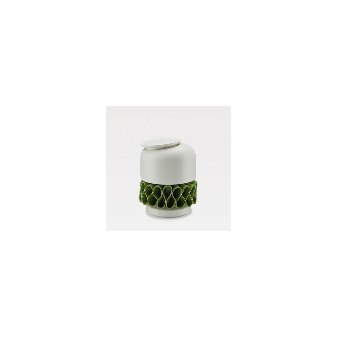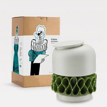 El Gola de Rufos es una pieza en loza, vidriada manualmente, siguiendo la tradición de la técnica manual de inmersión. Está adornada con un cuello de burel, inspirado en el modelo de rufos del siglo XVI, hecho a mano por una artesana portuguesa especializada. El cuello de burel permite la limpieza en seco. En esta caja podrás guardar preciosidades, reliquias, dulzuras y todo aquello que te gustaría ver bien protegido.